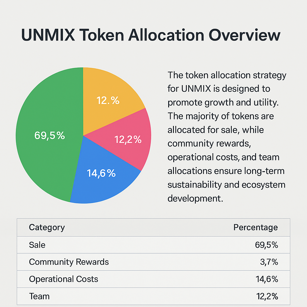 TOKENOMICS$UNMIX: The Fuel of the Autonomous EcosystemThe $UNMIX token is the economic foundation of the world's first Utility-Meme Hybrid ecosystem.